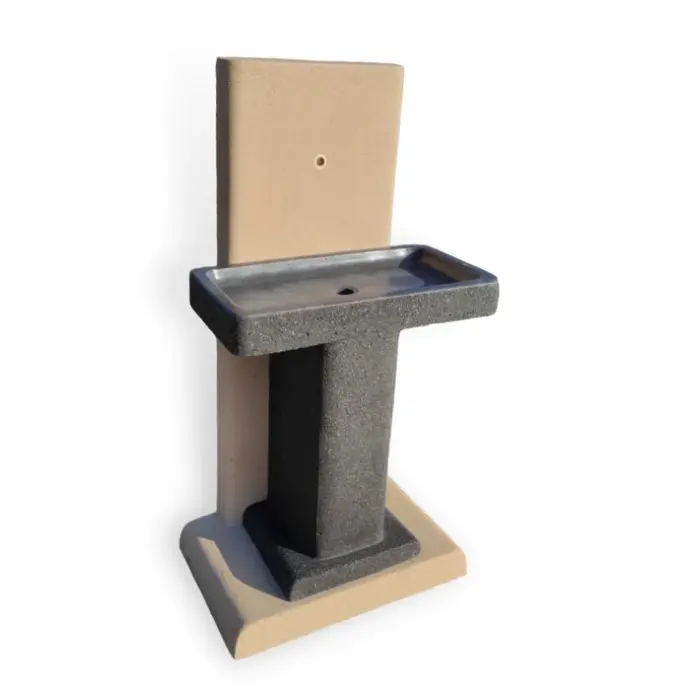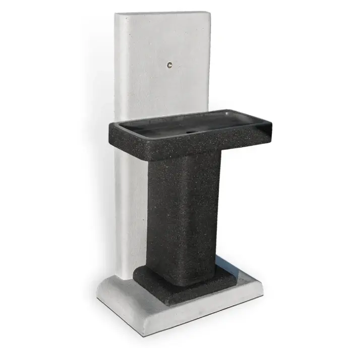 Vrtni umivalnik Č-34 je narejen iz litega betona in je sestavljen iz treh delov – miza, steber in korito. Za vsak del umivalnika lahko izbirate med 3 različnimi barvami. Lahko je prostostoječ ali pa ga postavite ob steno. V umivalniku je že vgrajena cev za vodo, zato je potrebno namestiti le pipo in sifon za odtok. Dolžina [cm]: 70 Širina [cm]: 42 Višina [cm]: 135 Teža [kg]: 260 Vse cene so izražene v evrih z obračunanim 22% DDV.
